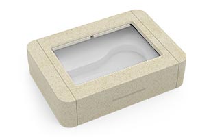 Æsken er fremstillet i hybridmateriale af 40% Bambusfibre, for at nedbringe brugen af plastic. Dit reklameprodukt kan let ses gennem det store vindue i æskens låg. Låget holdes sikkert lukket, af to små magneter. En fantastisk præsentations idé til dit næste event. |